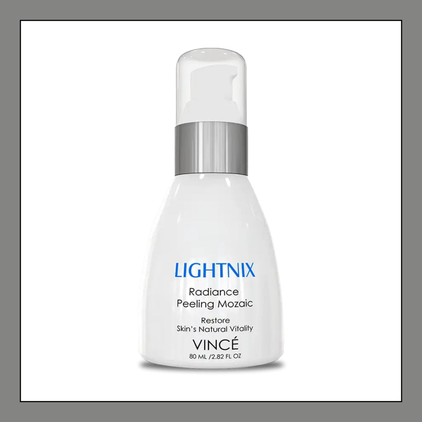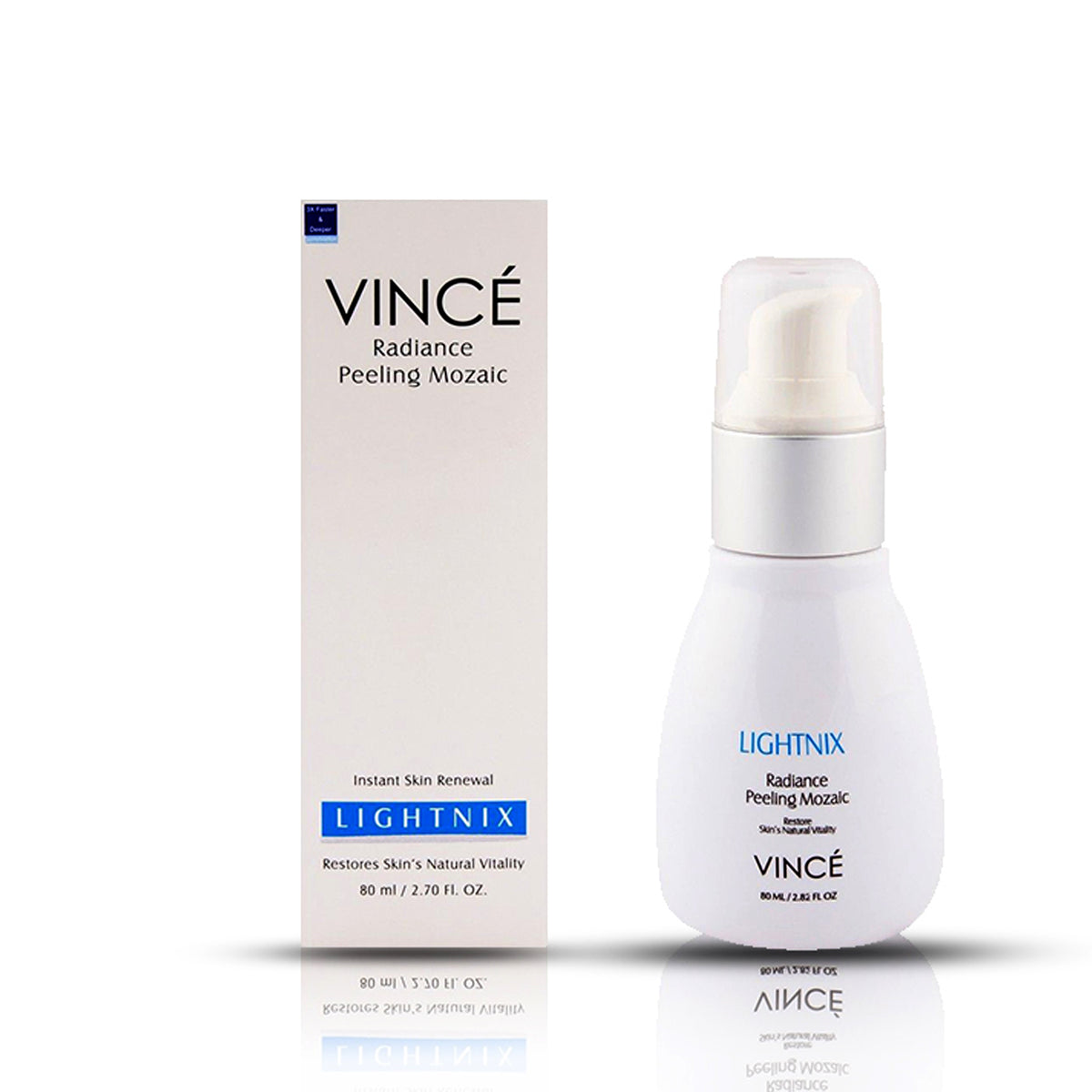 Clean your face & neck. Take a small amount of Vince Radiance Peeling Mozaic into your palm, apply it on your dry face and neck, gently massage in a circular motion until dull and dead cells appear on the top of the skin.