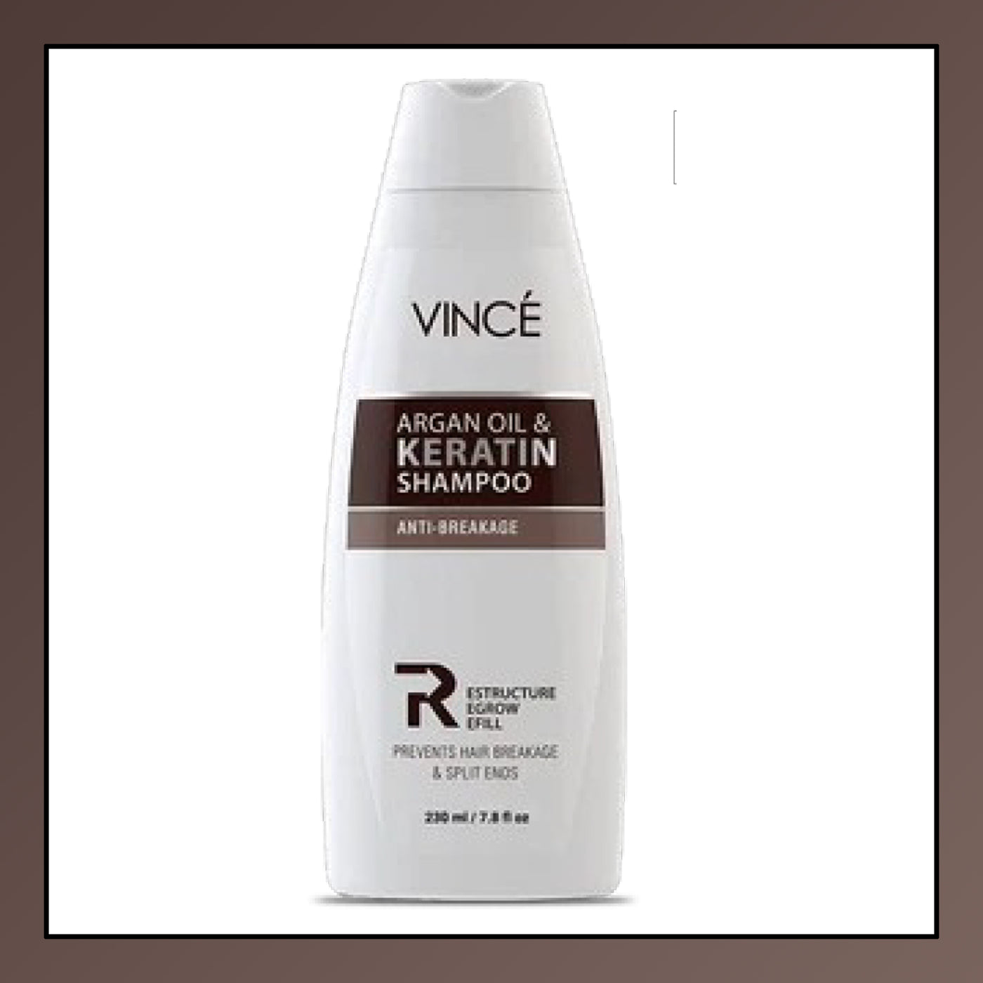 Vince Argan Oil & Keratin Shampoo is enriched with the natural goodness of Argan oil, keratin, and vitamin E helps restore balance to your scalp and reinforce the inner strength of each hair strand. The botanical ingredients of this anti-breakage shampoo help in conditioning the hair shafts and preventing frizz and breakage also leaves your hair feeling soft, silky, and luscious.