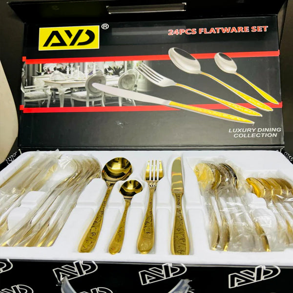 A 24-piece luxury stainless steel knife, fork, and spoon tableware flatware set typically includes a complete setting for six people, with each place setting including a knife, fork, tablespoon, and teaspoon. These sets are designed for both everyday use and special occasions, combining functionality with elegant design.