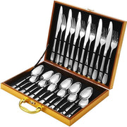Description: A 24-piece luxury stainless steel knife, fork, and spoon tableware flatware set typically includes a complete setting for six...