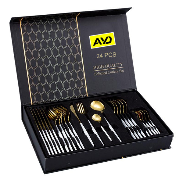 Luxury Stainless Steel Knife Fork Spoon Tableware Flatware Set 24 Set