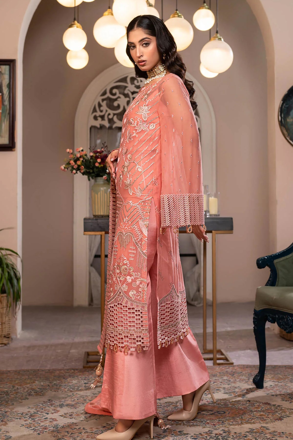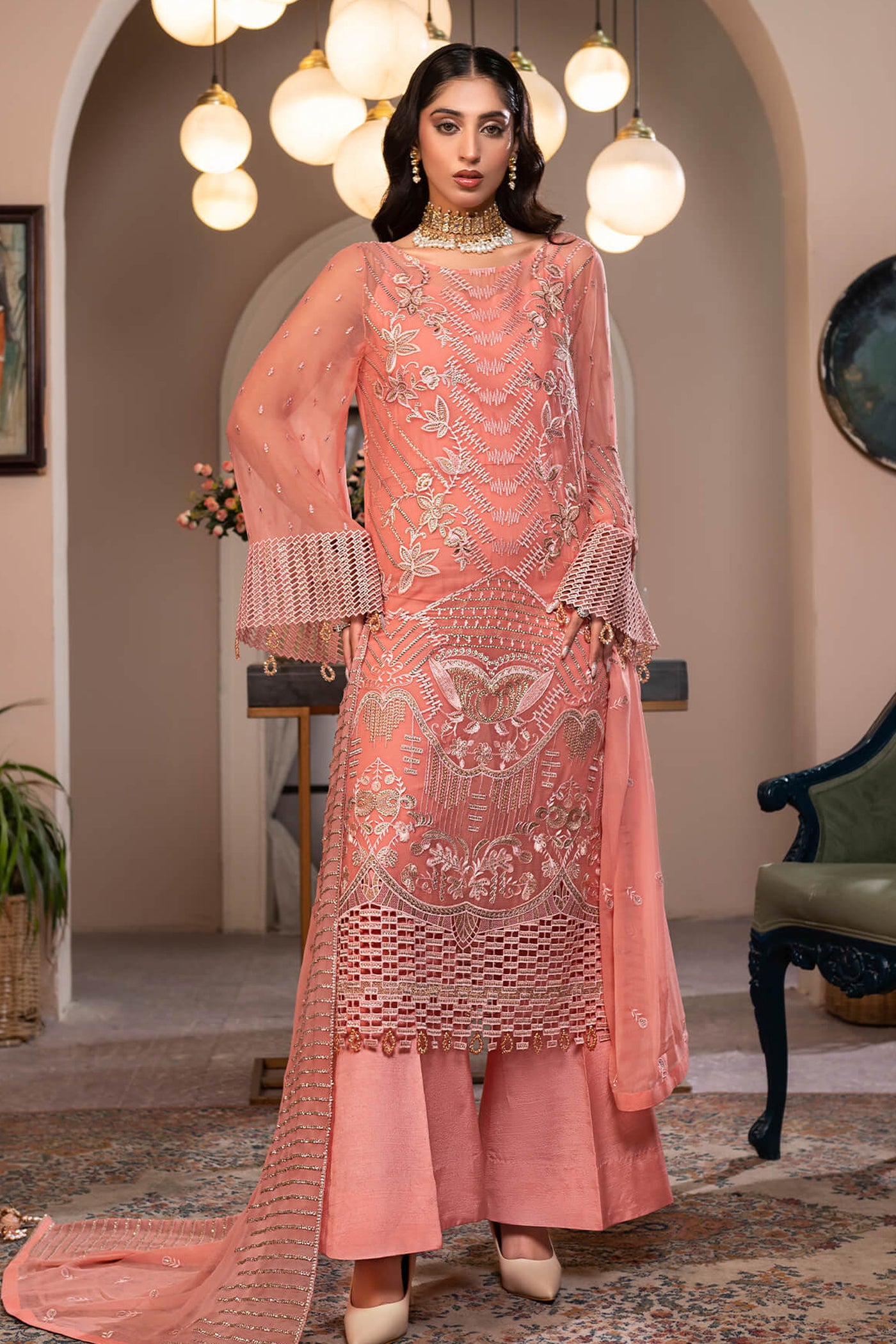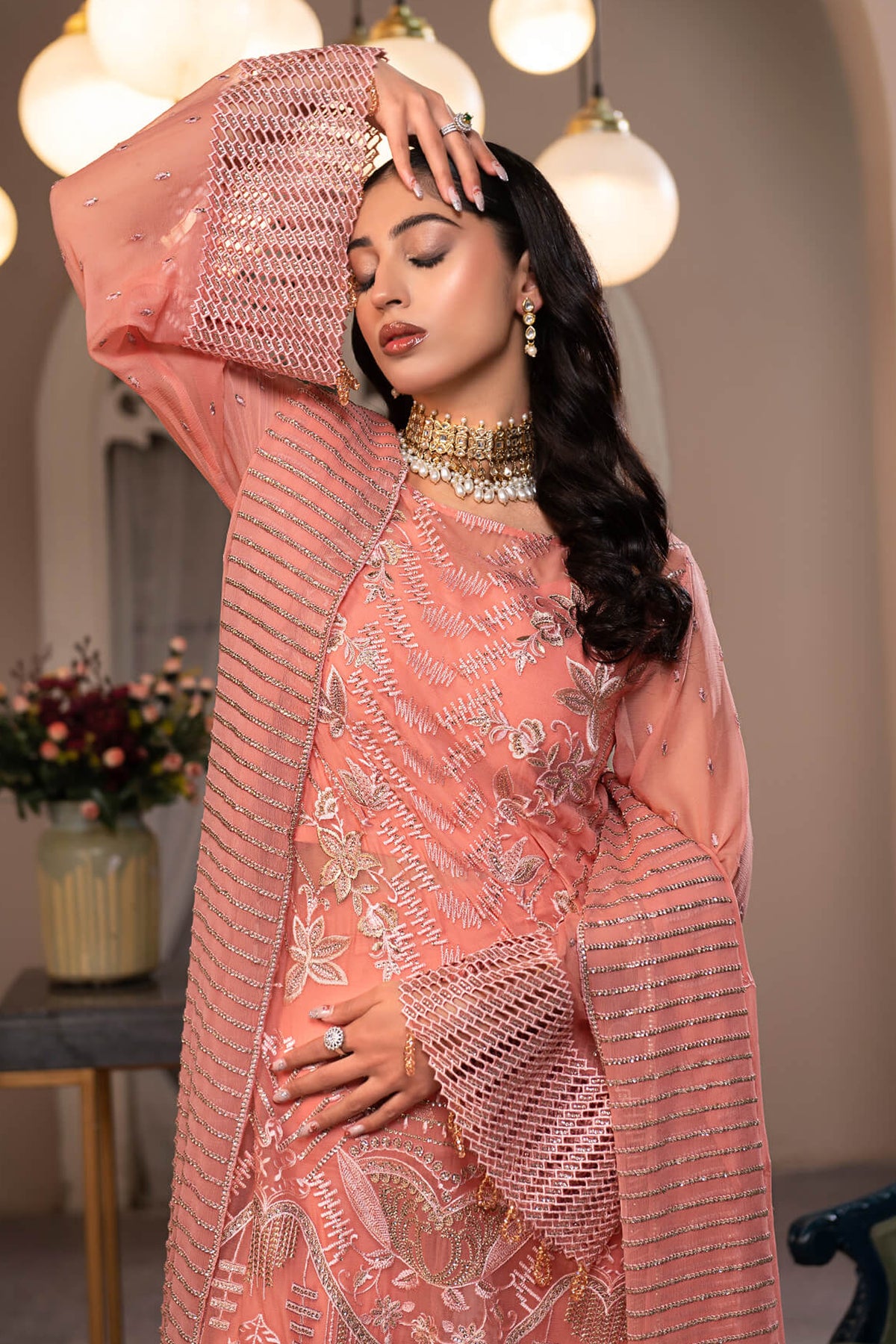 Embroidered sleeves Chiffon 1 YARD