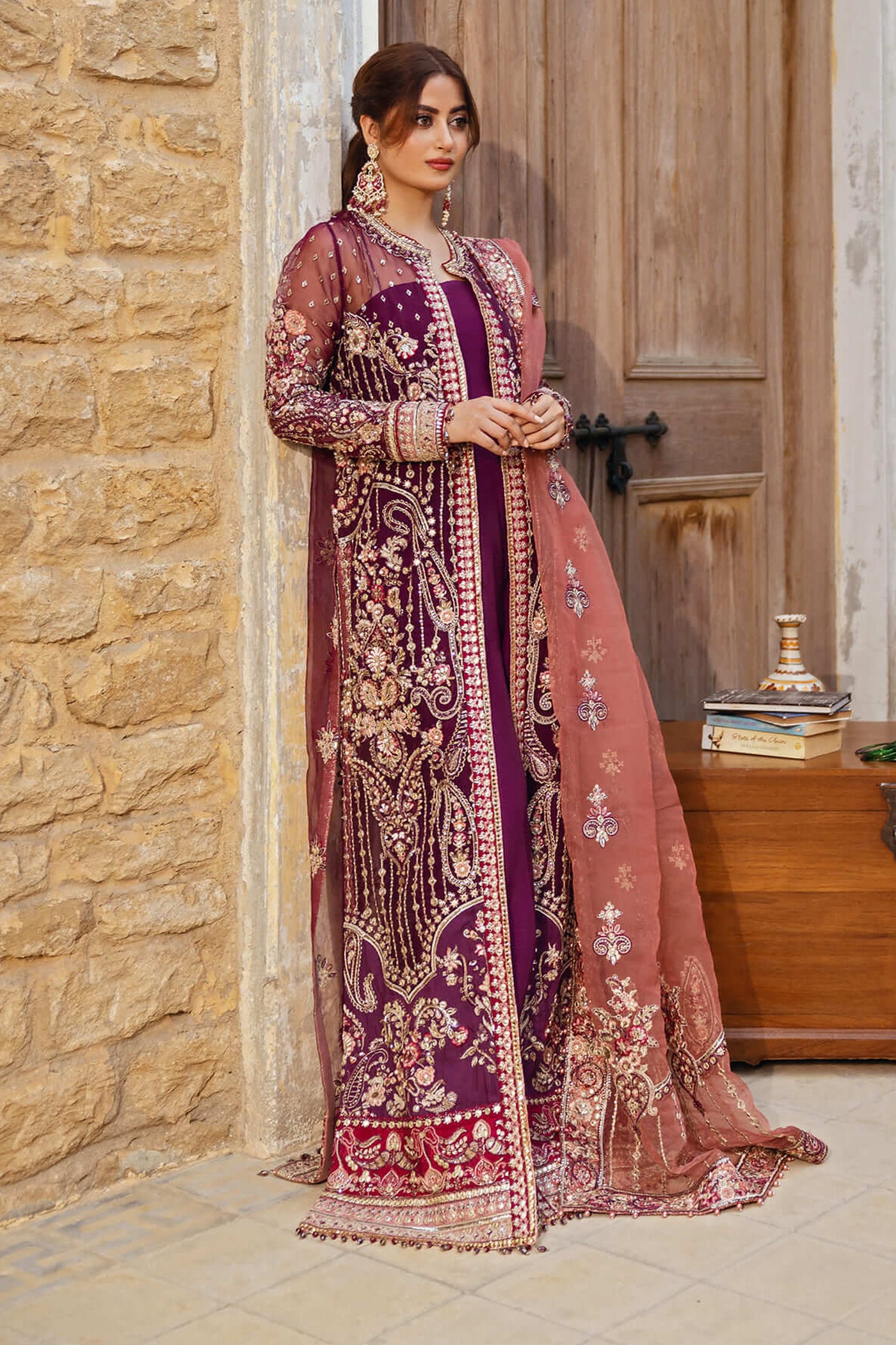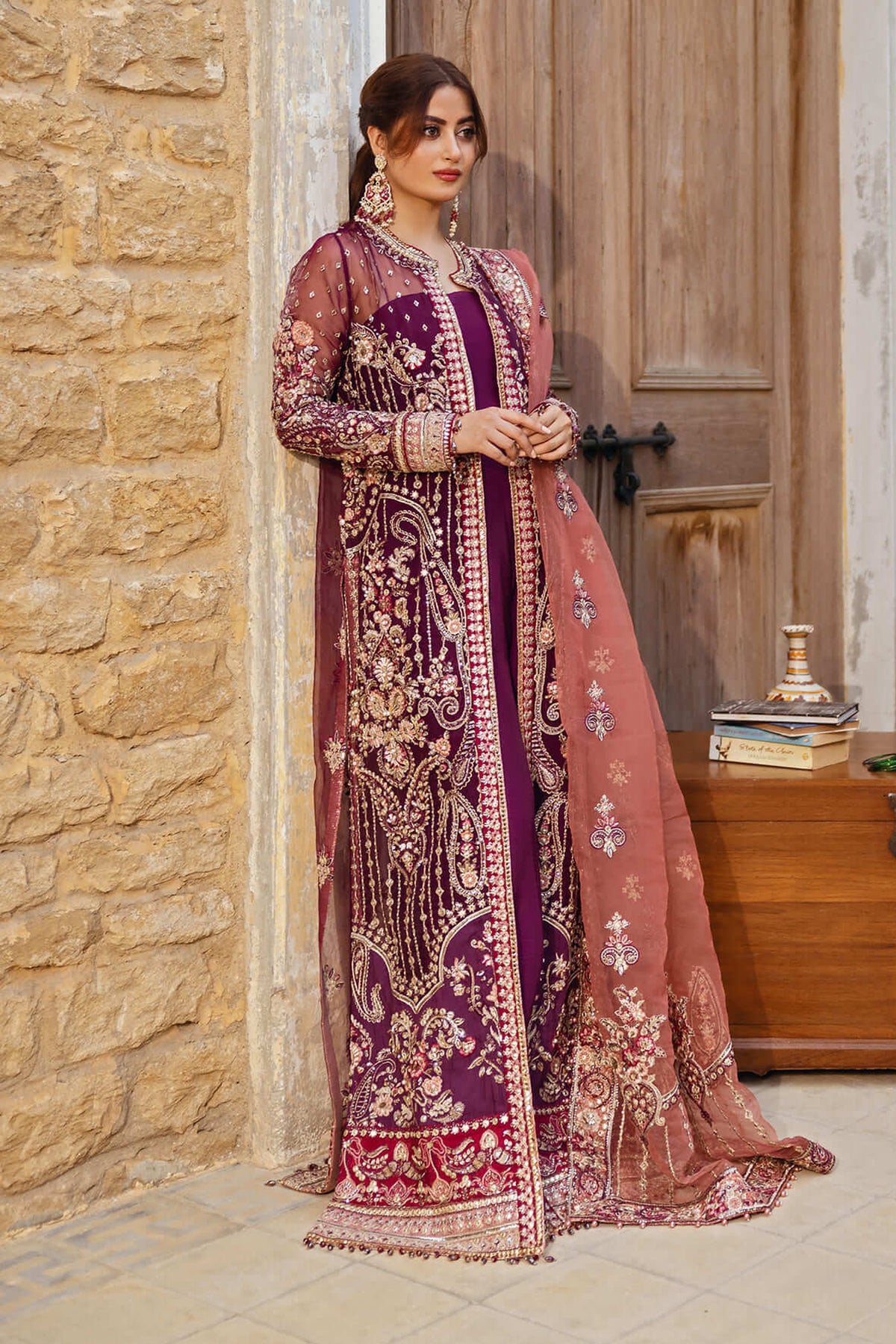 Embroidered organza body for front & back embellished with handmade Embroidered organza for front & back panel Embroidered organza for...