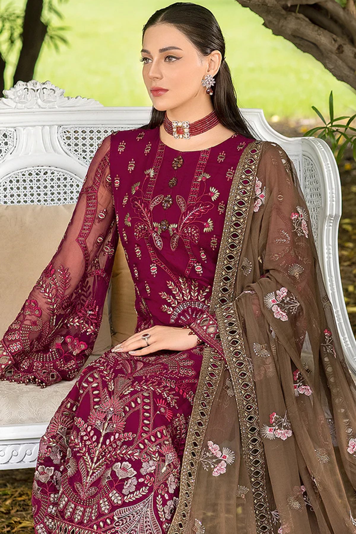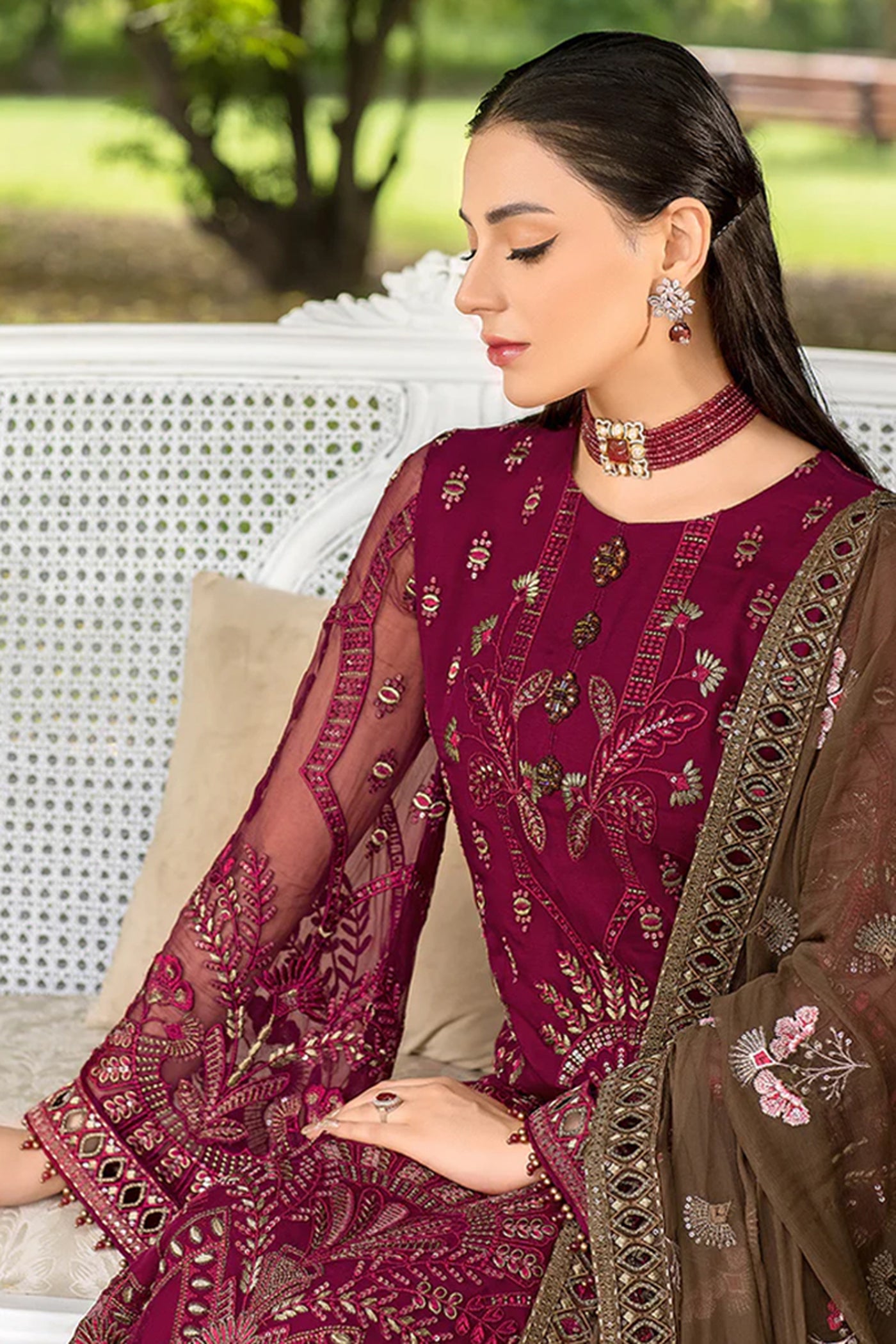 Embroidered Chiffon Dupatta (Contrast)