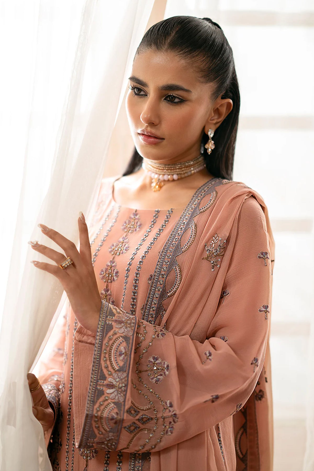 Embroidered Chiffon FrontEmbroidered Chiffon Side PanelPlain Chiffon BackEmbroidered Chiffon SleevesEmbroidered Chiffon Dupatta Embroidered Organza Border For FrontEmbroidered Organza Border For BackEmbroidered...
