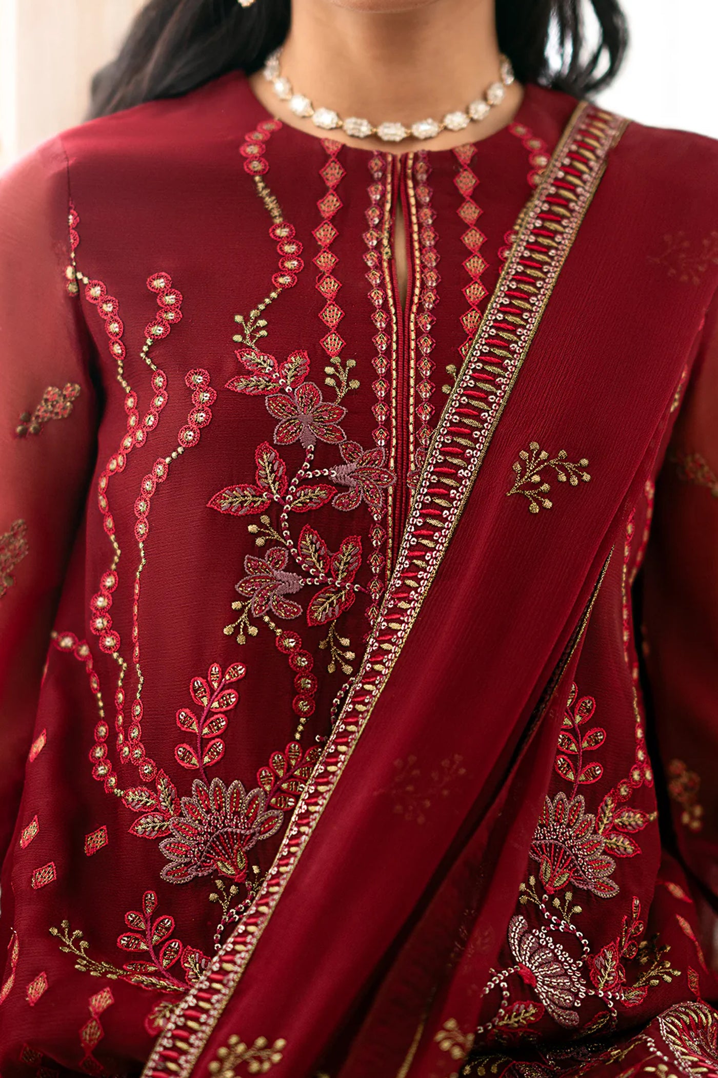 Embroidered Chiffon FrontEmbroidered Chiffon Side PanelPlain Chiffon BackEmbroidered Chiffon SleevesEmbroidered Chiffon Dupatta Embroidered Organza Border For FrontEmbroidered Organza Border For BackEmbroidered...