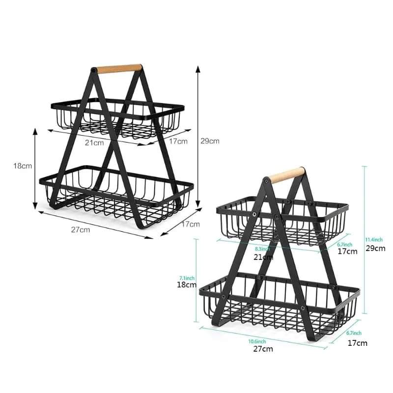 Material    Carbon SteelColour    BlackSpecial feature    RemovableNumber of shelves    2Room type    Kitchen  The two-layer fruit basket has...