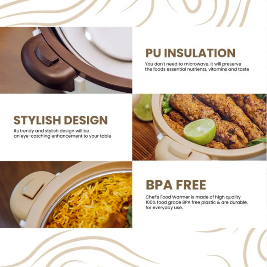 The Ricco 4 Pcs Warmer Pot with Lock Set, featuring a stainless steel interior, is a versatile kitchen set designed to keep your food warm for extended periods. It typically includes pots in various sizes, each equipped with a lockable lid to ensure heat retention and prevent spills. The stainless steel interior provides durability and ease of cleaning. This set is perfect for serving meals at gatherings or keeping food warm during family dinners. Would you like more details or assistance with purchasing this item?