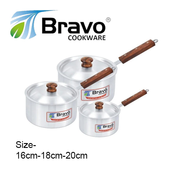 Made of aluminium for efficient heat distribution Wooden handle for comfortable grip and heat insulation These sauce pans are versatile for various cooking tasks and come in different sizes to suit different needs.