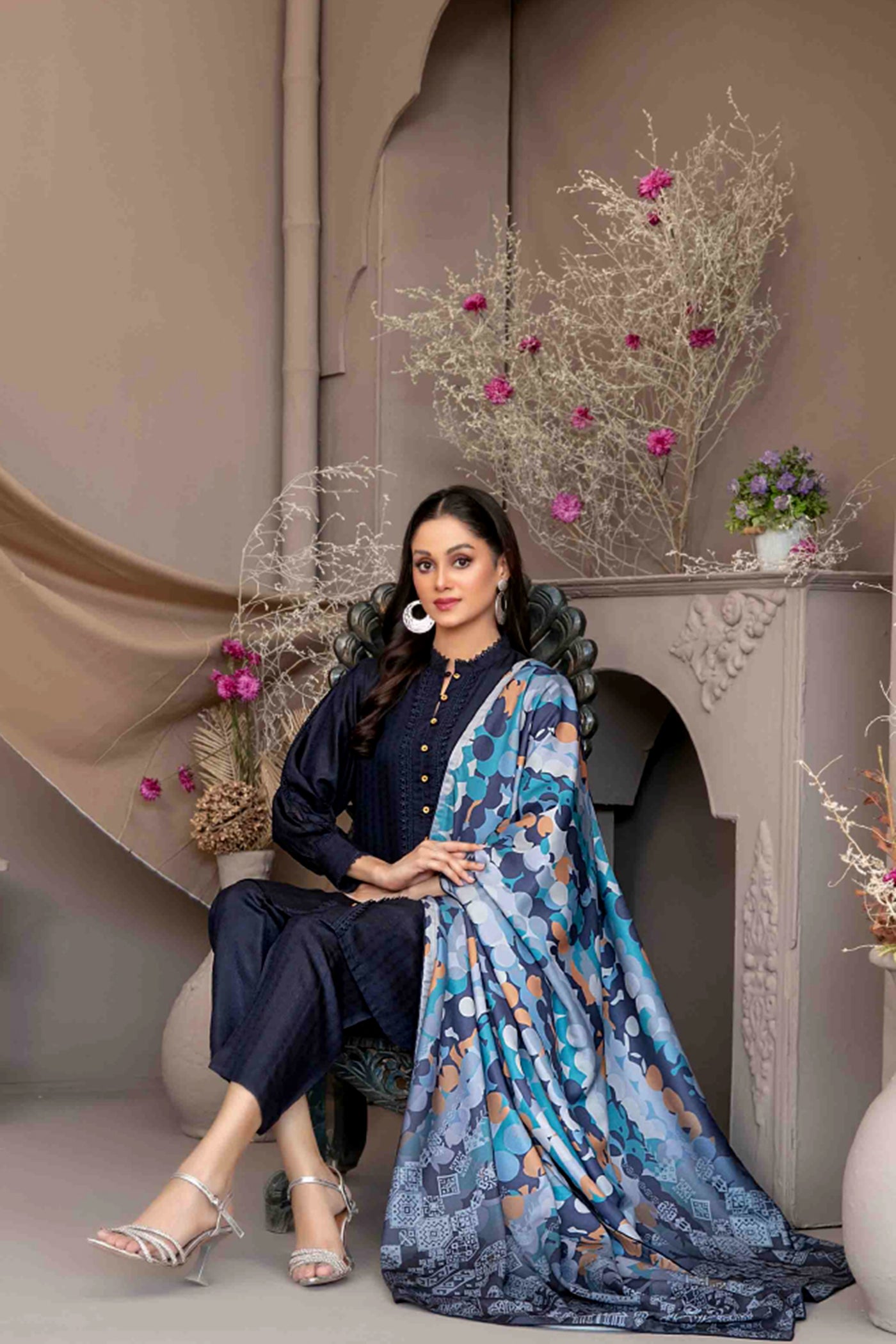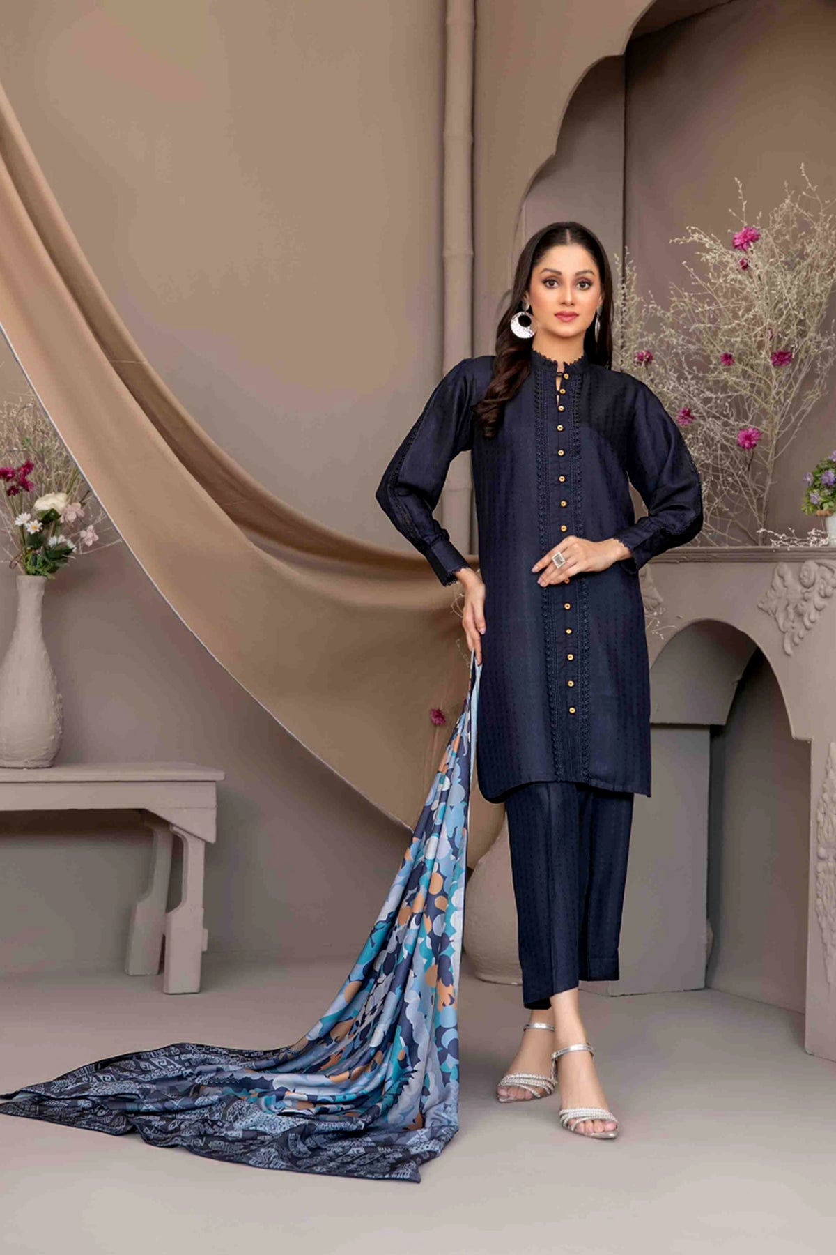 3 Piece Ready-to-wear Collection By Tawakkal Fabrics, Attractive & Elegant Jacquard Viscose Collection comes with: Stitched Exclusive Jacquard Viscose Shirt...