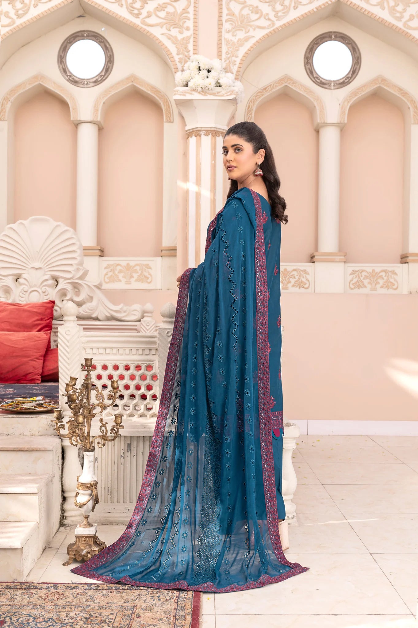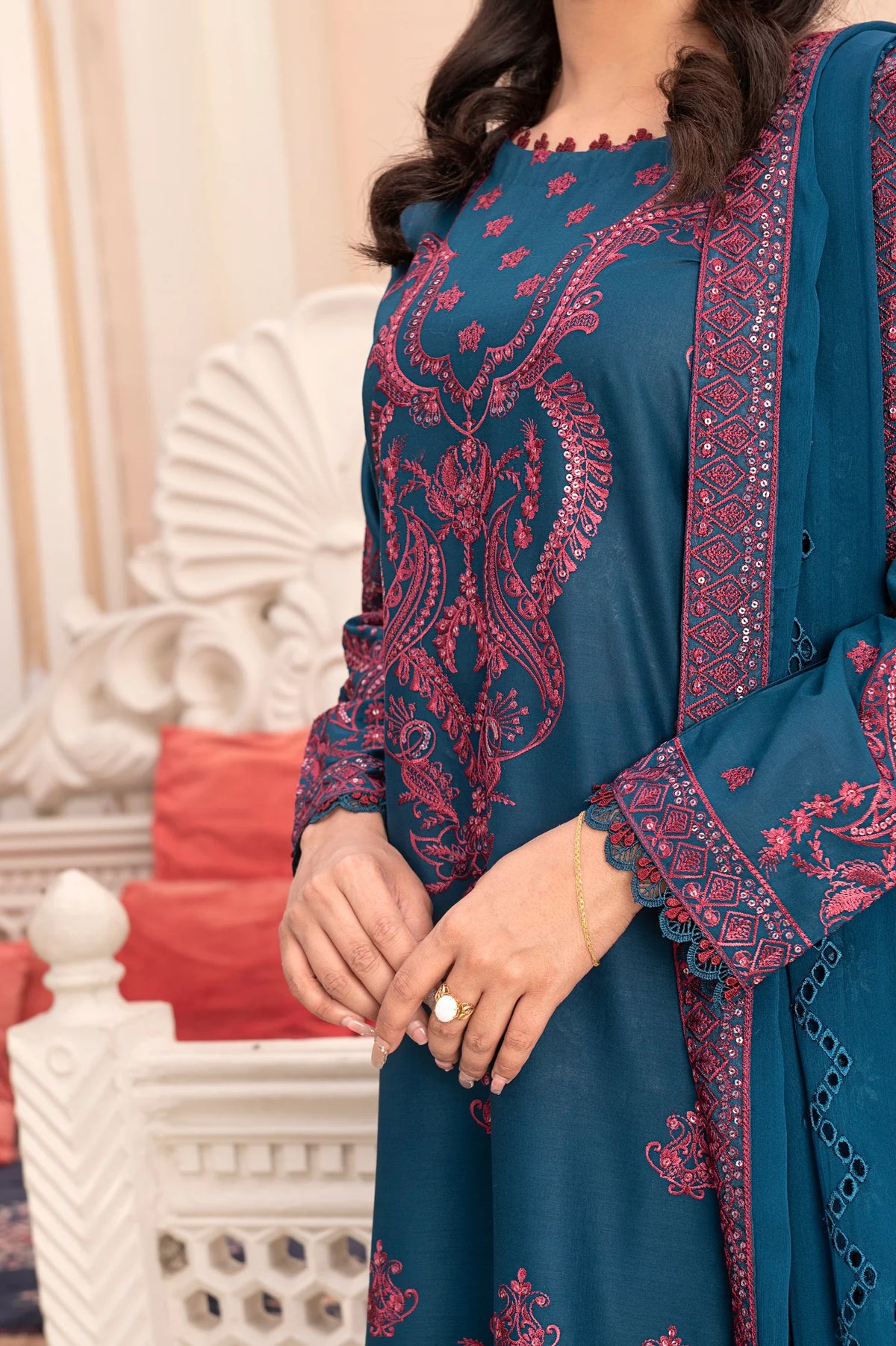 3Pc unstitched lawn embroidered shirt crinkle embroidered dupatta with plain trouser  Care Instructions: Iron at medium Heat shrink fabric before...