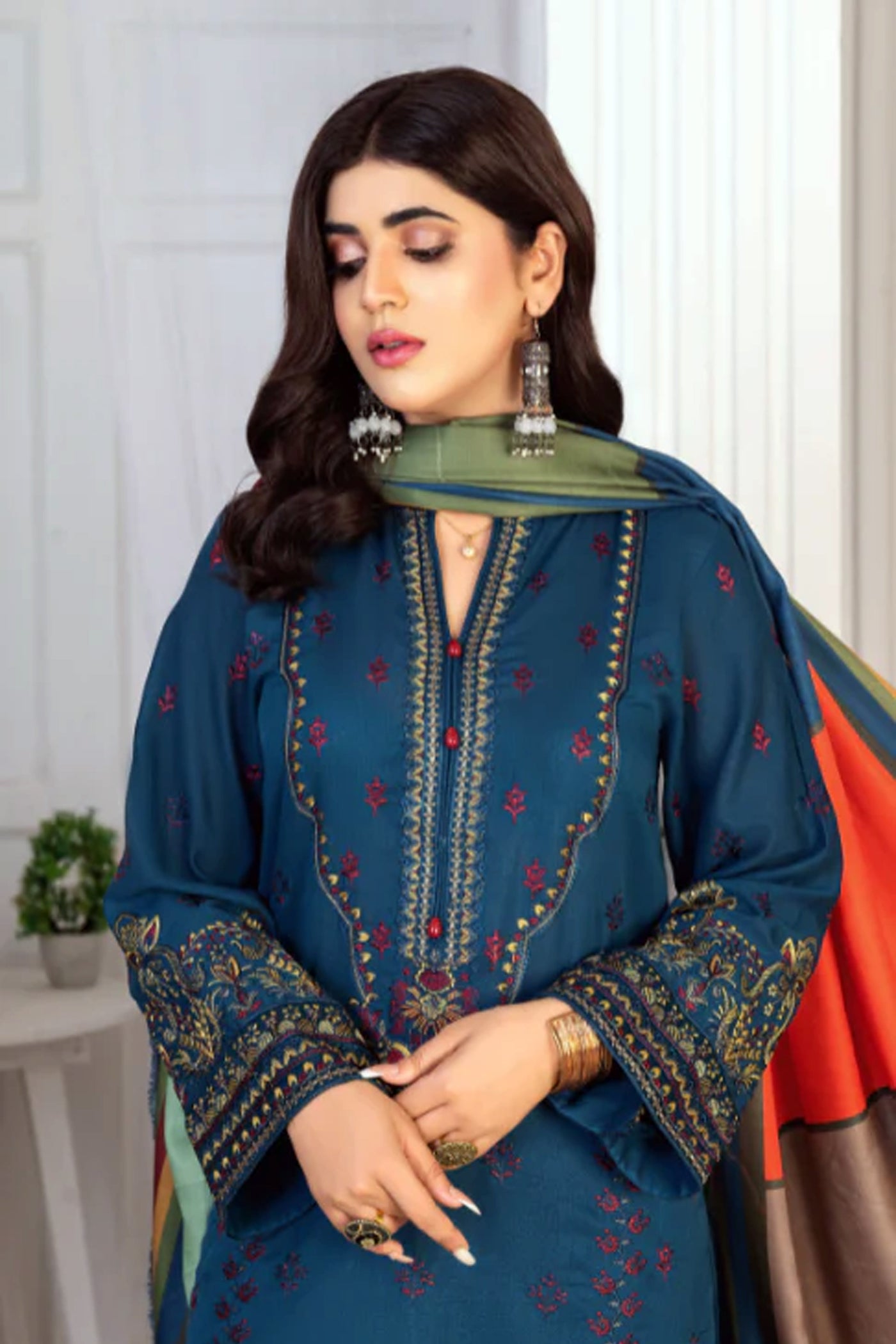 3Pc unstitched Resham Karandi Embroidered Shirt wth Fancy Print Dupatta  Product vendor Wania by Wadwa Arts Collection Maya vol-1  ...