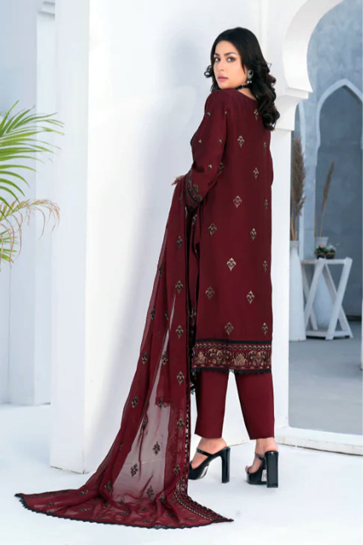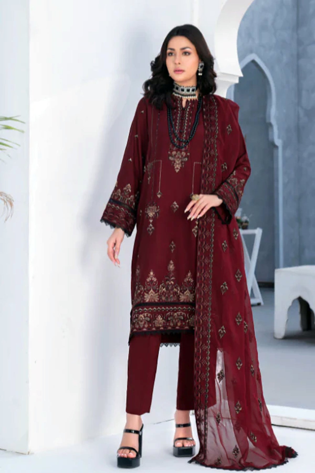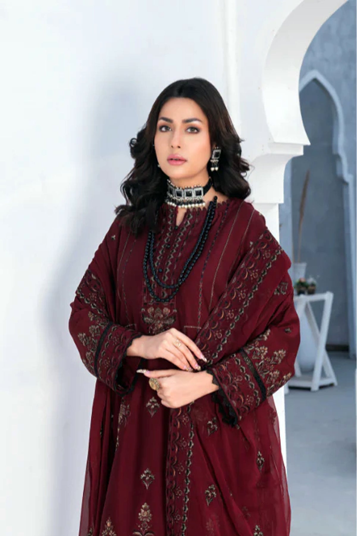 Luxury Viscose 3pc unstitched silk embroidery collection with Bamber crinkle embroidery dupatta