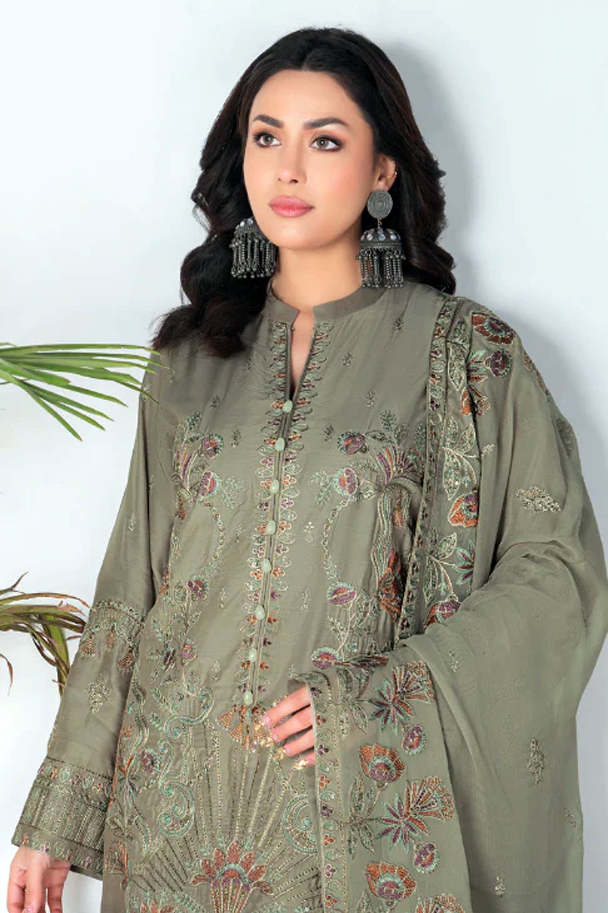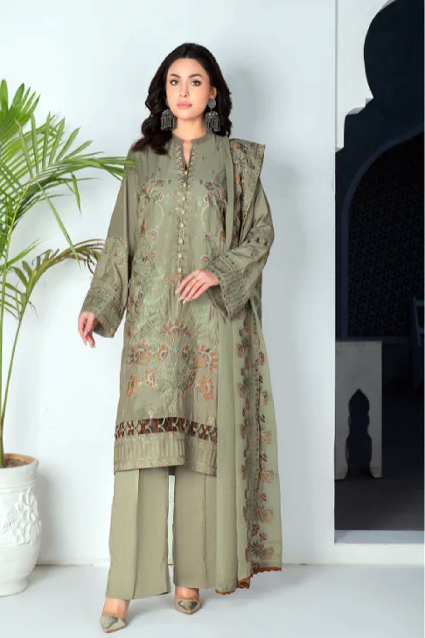 Luxury Viscose 3pc unstitched silk embroidery collection with Bamber crinkle embroidery dupatta Product vendor Wania by Wadwa Arts Collection Meeshal...