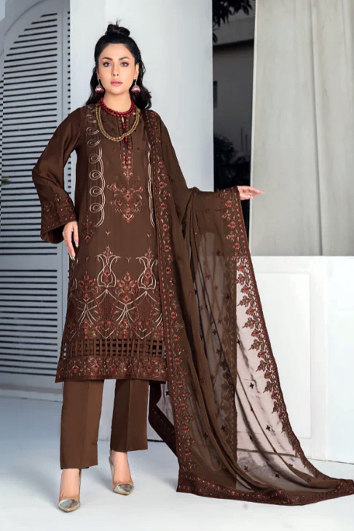 Luxury Viscose 3pc unstitched silk embroidery collection with Bamber crinkle embroidery dupatta Product vendor Wania by Wadwa Arts Collection Meeshal...