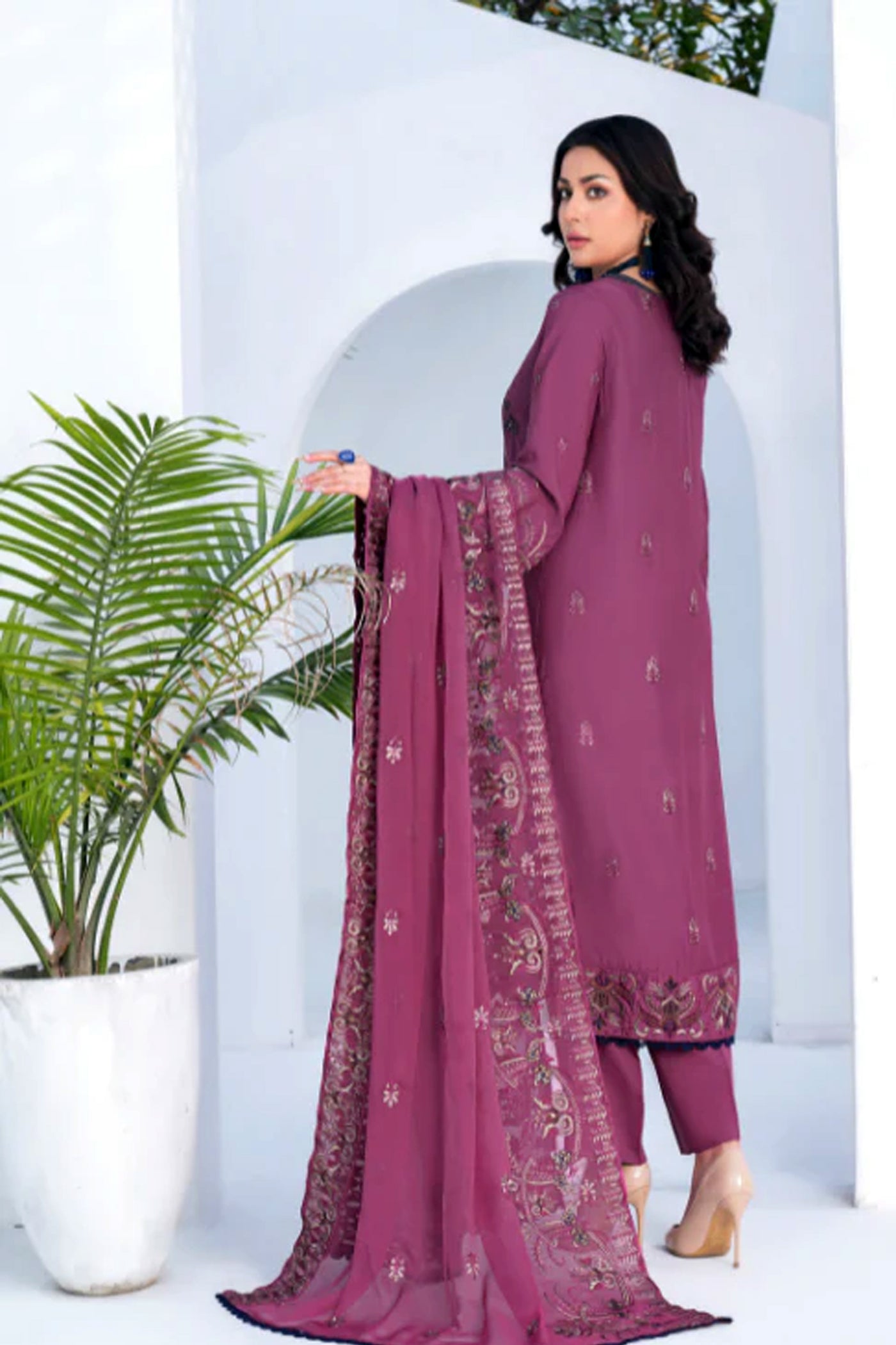 Luxury Viscose 3pc unstitched silk embroidery collection with Bamber crinkle embroidery dupatta