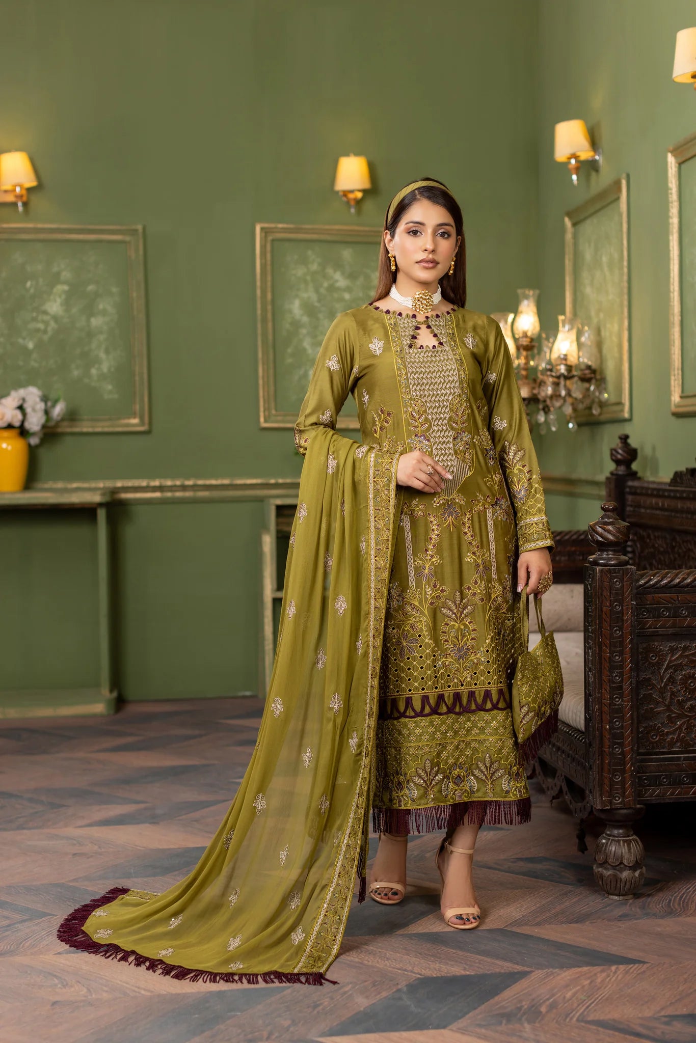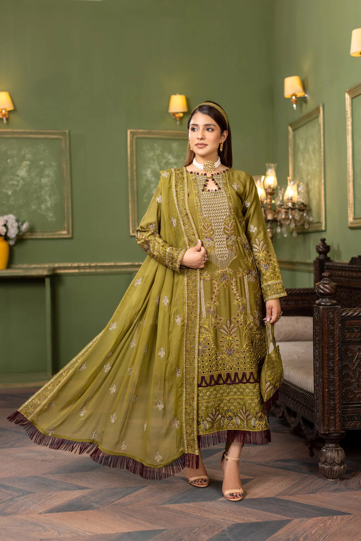 3pc unstitched LUXURY VISCOSE SILK EMBROIDERED SHIRT BAMBER CRINKLE EMBROIDERED DUPATTA Product vendor    Wania by Wadwa ArtsCollection    MEESHAL...