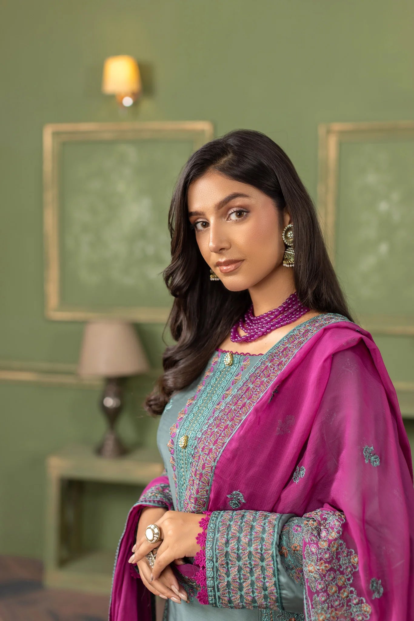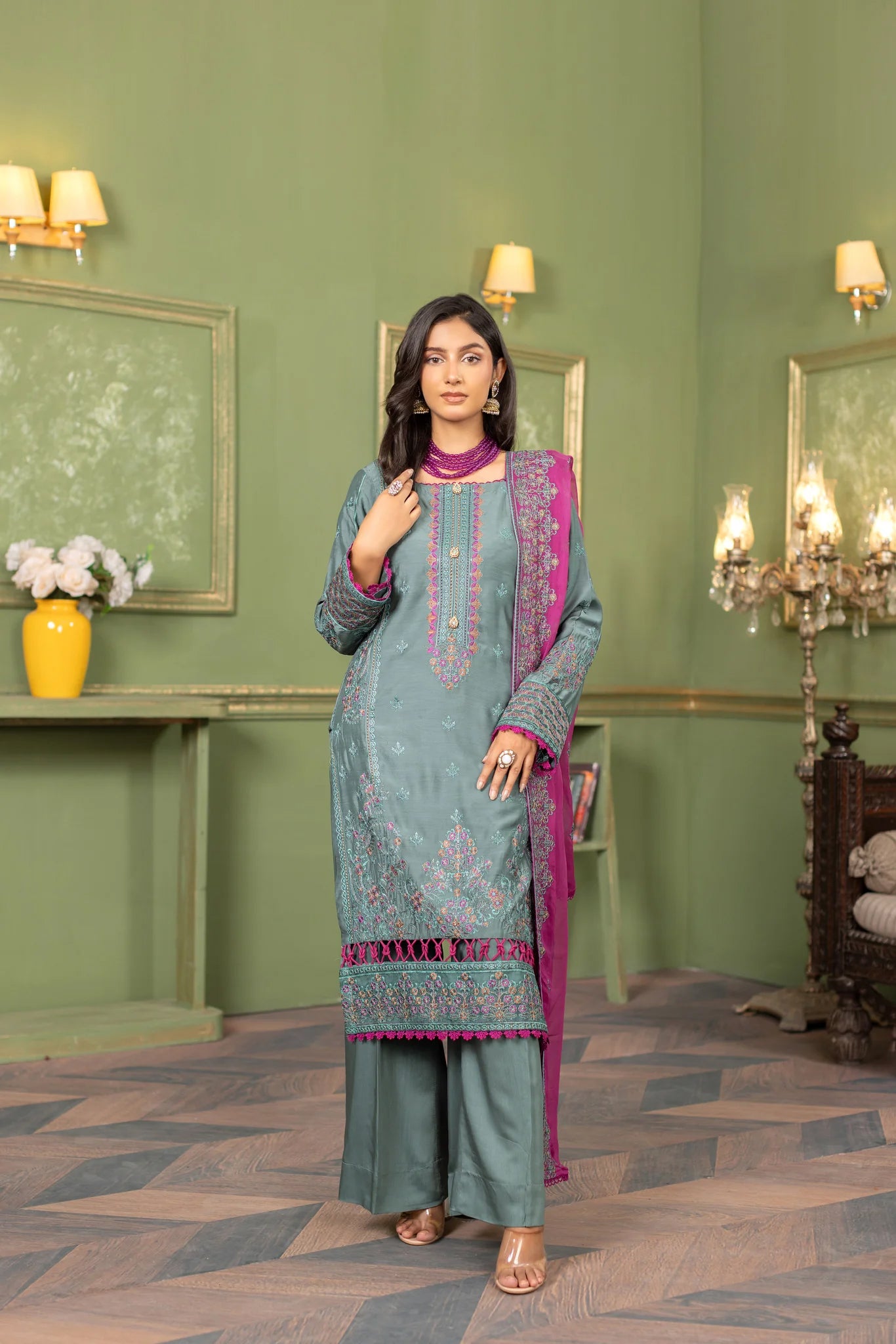 3pc unstitched LUXURY VISCOSE SILK EMBROIDERED SHIRT BAMBER CRINKLE EMBROIDERED DUPATTA Product vendor    Wania by Wadwa ArtsCollection    MEESHAL...