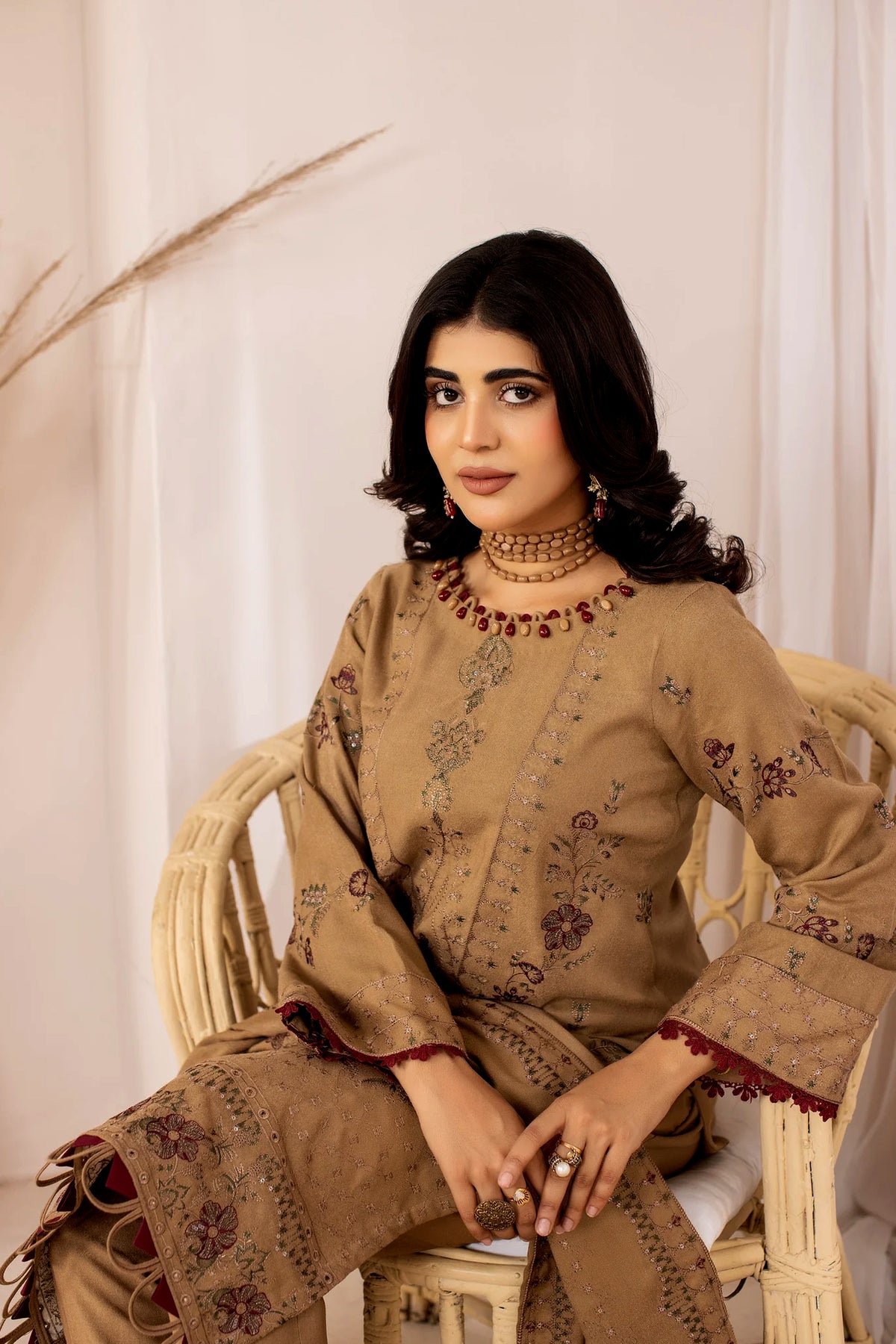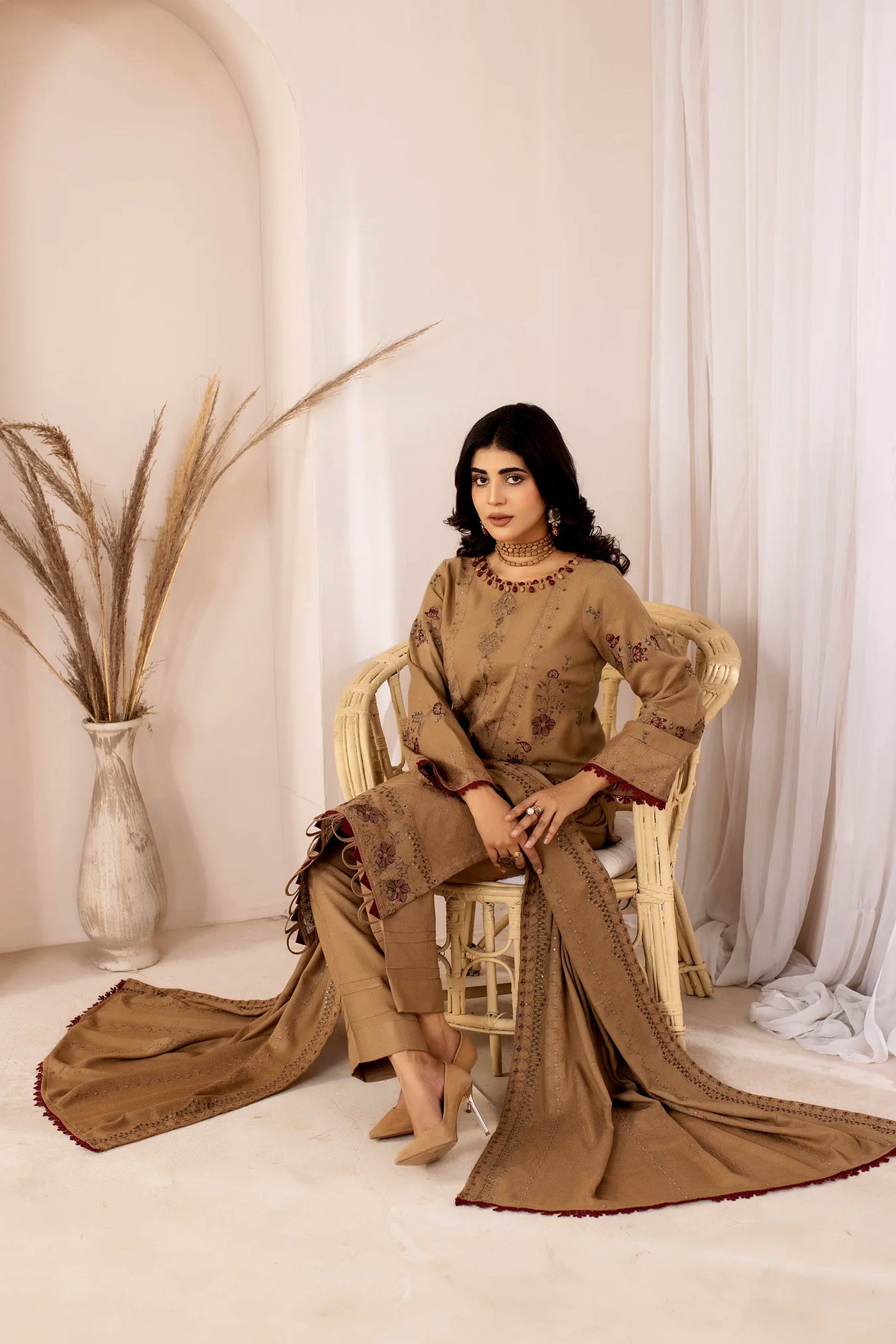 3 PC UNSTITCHED EMBROIDERED SHIRT WITH WOOL EMBROIDERED SHAWL