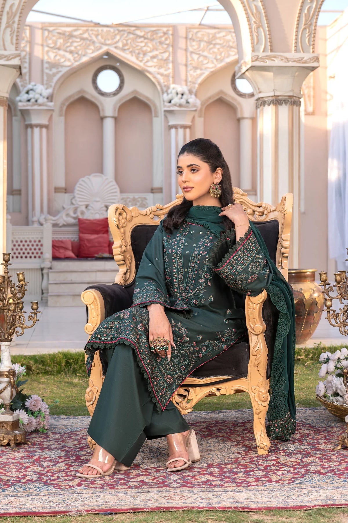 3Pc unstitched lawn embroidered shirt crinkle embroidered dupatta with plain trouser  Care Instructions: Iron at medium Heat shrink fabric before...