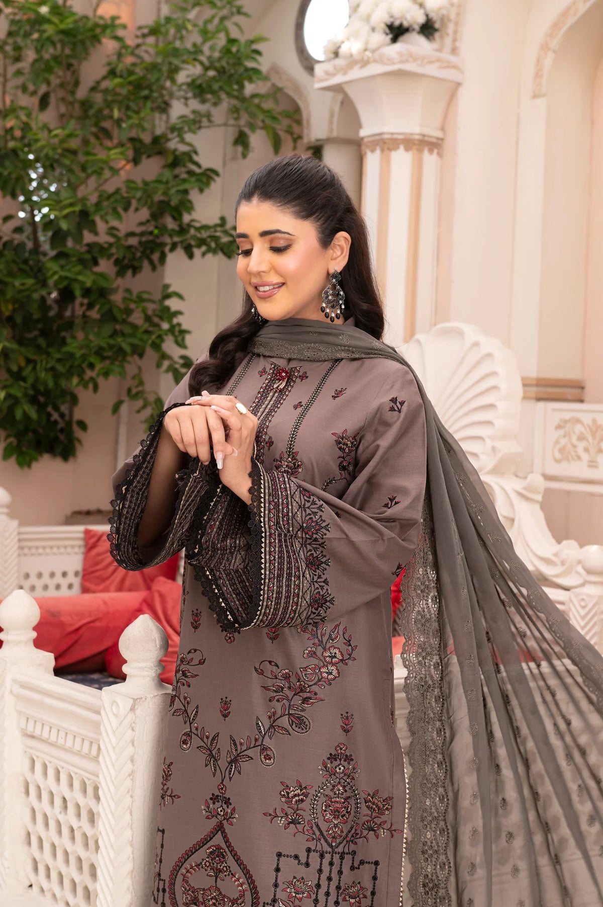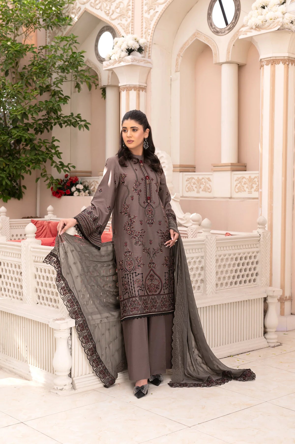3Pc unstitched lawn embroidered shirt crinkle embroidered dupatta with plain trouser