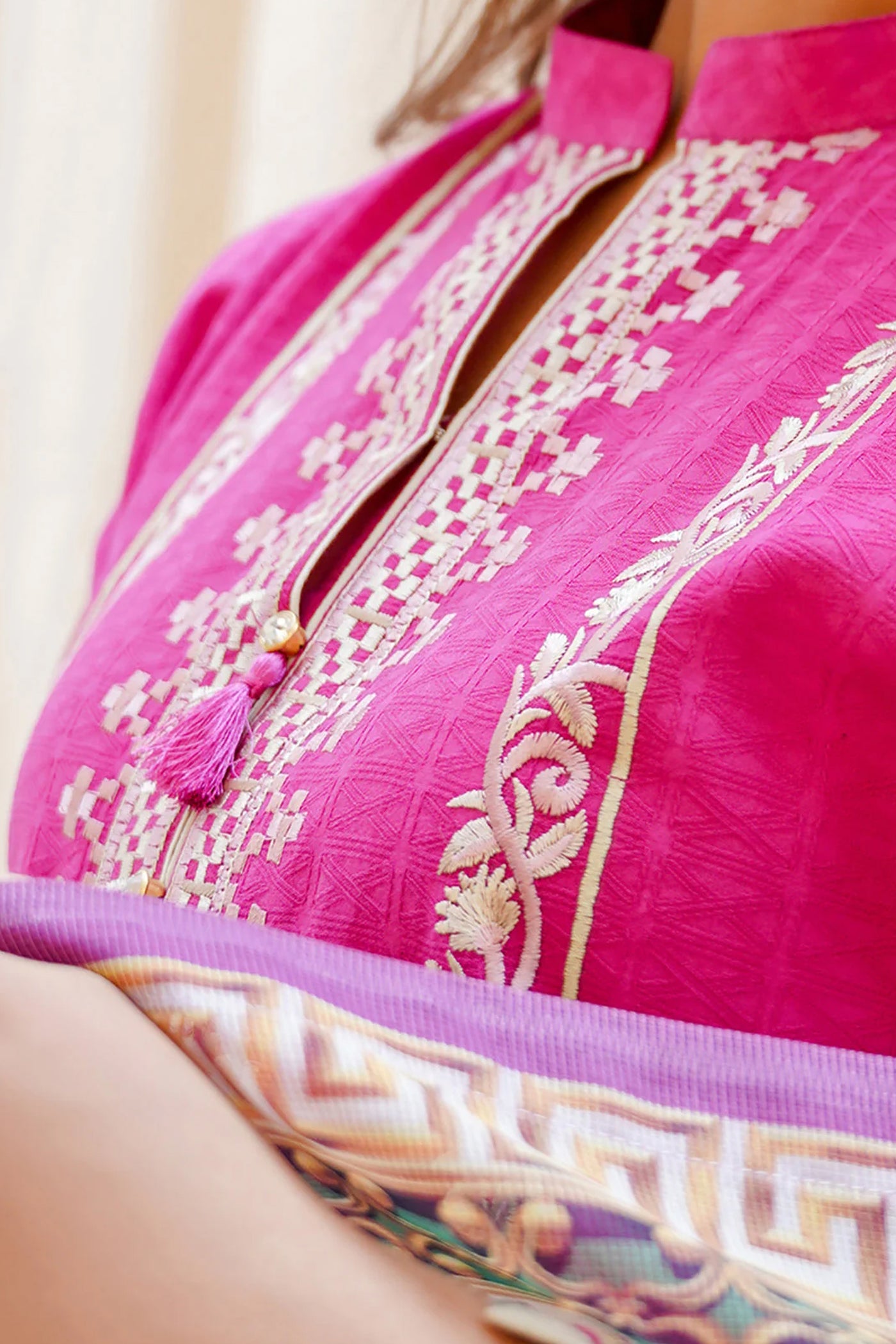 and excellent artistry showcasing traditions with modern fashion. With a long neckline adorned with