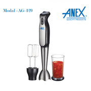 The Anex AG-129 Deluxe Hand Blender & Beater is a versatile kitchen appliance designed for blending, mixing, and beating tasks. It is an excellent tool for preparing soups, sauces, smoothies, and other recipes that require blending or mixing. Here are some key features and specifications: